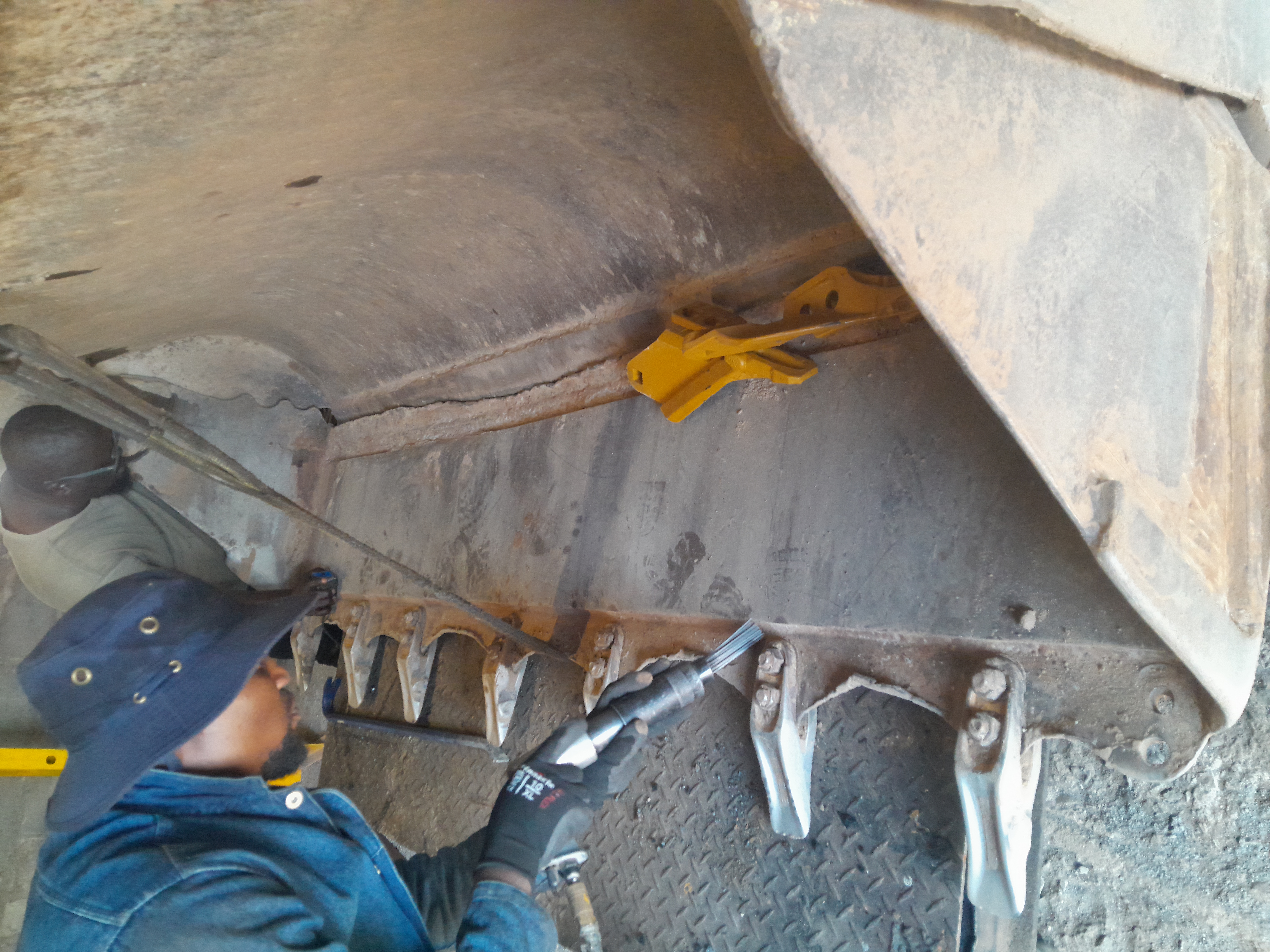 TLB FRONT LOADER BUCKET: We have completed the task of fortifying the bottom of the front bucket of a TLB, making it stronger so that it can last longer without the bucket taking direct damage.